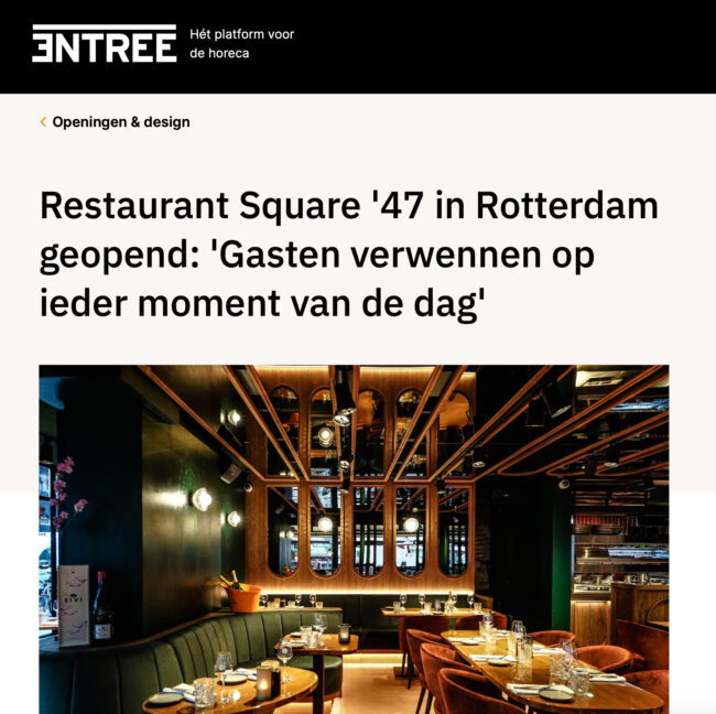 Entree: Restaurant Square ’47 in Rotterdam geopend: ‘Gasten verwennen op ieder moment van de dag’